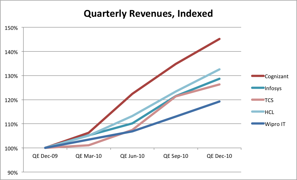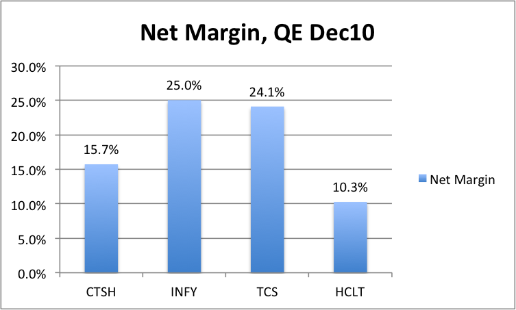 The exception to this is of course, Cognizant, which among other things, has used its Bench Costs, and subsequently lower Operating Margins, as a strategic weapon. They are on the right path and have been for a while. That’s the company to beat.